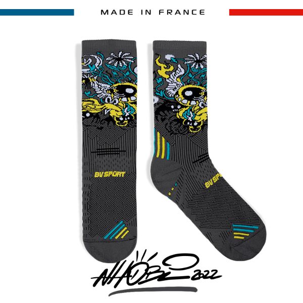 Made in France, the RUN COLLECTOR NHOBI running socks are the result of a collaboration. More than a collaboration, a meeting! The DNA of these socks combines colors, emotions, and the universe of Nhobi, all crowned by the know-how of BV Sport.