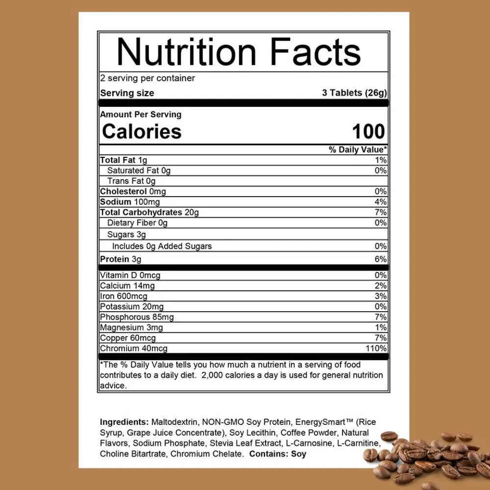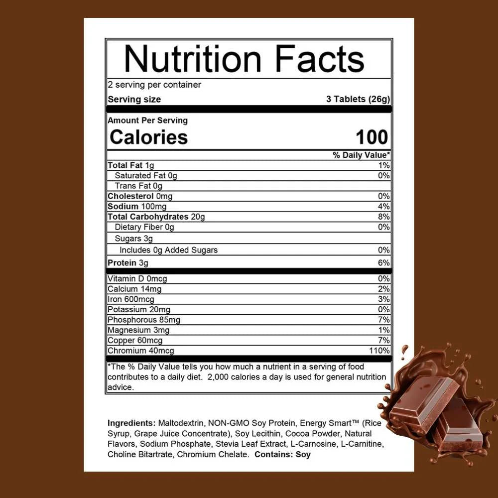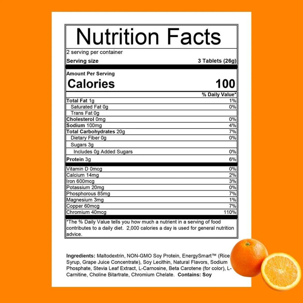 Three Perpetuem Solids tablets contain 100 calories.
