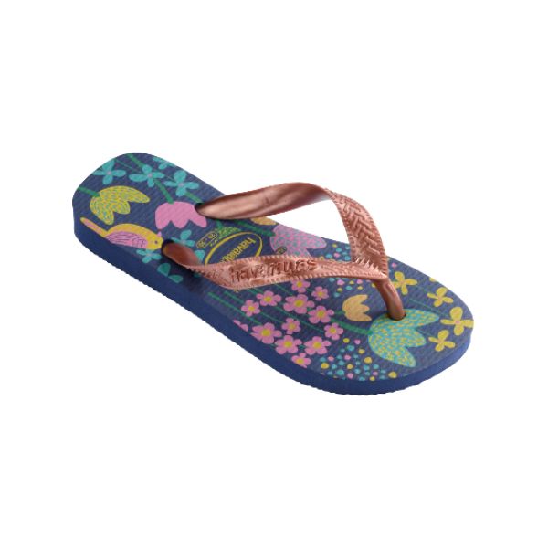 Havaianas brings you Kids Flores, the classic Top flip-flop model with a cheerful multi-coloured flowery print that the little ones at home will just love. There are two prints available with pink or golden traps. Which one will you go for? -Made in Brazil.