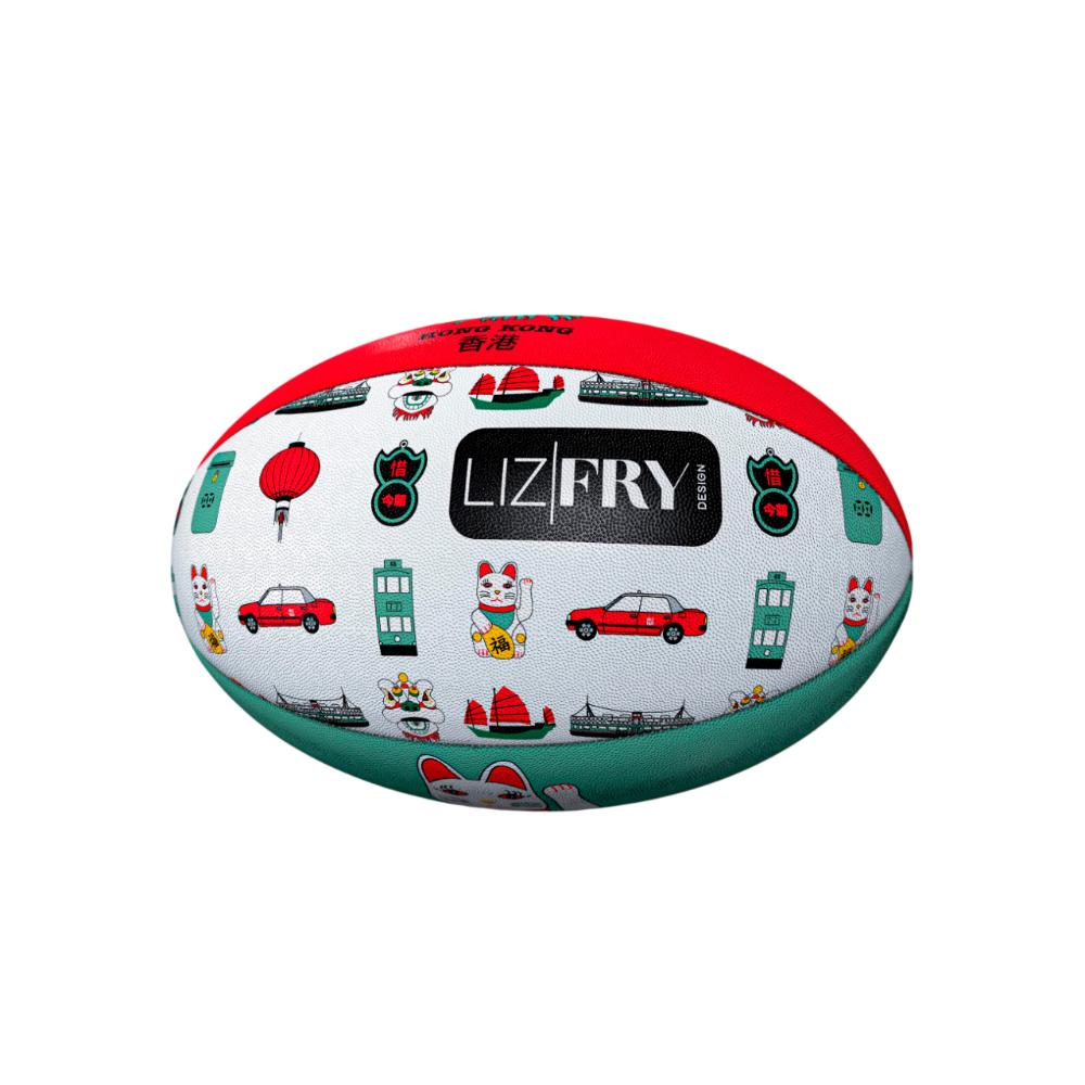 Escapade sports has collaborated with local Hong Kong design company Liz Fry Design for a UNIQUE, Quintessentially Hong Kong, Special Edition Artwork Gilbert rugby ball.