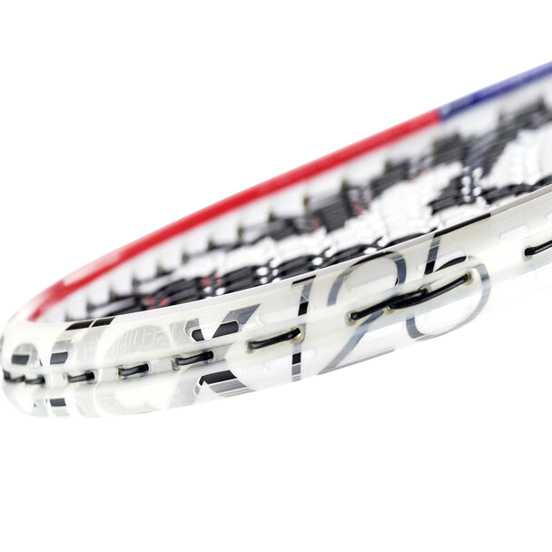 To increase spin and tolerance against off-center shots, the Carboflex 125 Airshaft features "Extended String hole" technology: 12 eyelets at specific spots on the frame (at 3, 9, and 12 o’clock) have been enlarged to let the strings breathe and enhance their elasticity.