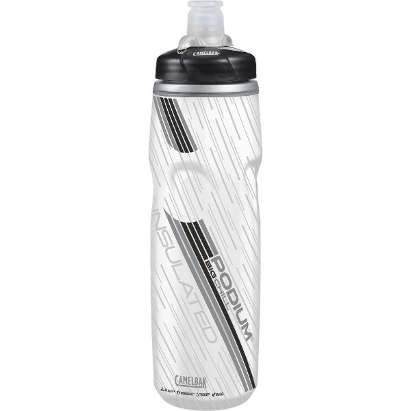The 25 fl. oz. CamelBak Podium Big Chill Insulated Water Bottle uses double-walled construction to keep water cold long after you start pedaling. 100% free of BPA, BPS and BPF.